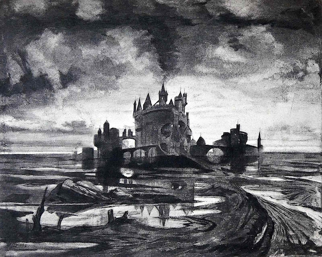 a C.B. Falls illustration, 1930 "The Peasant tells of the Castle"